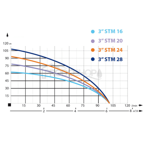 • Ponorné čerpadlo STM 16 se používá hlavně při zásobování rodinných domů pitnou vodou, získávanou z větších hloubek (více než 8m) nebo přiváděnou z větší vzdálenosti.