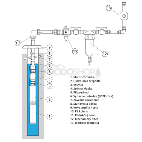 Automatická domácí vodárna s ponorným čerpadlem SQOLA-0,75 s PC-16 se používá zejména sezónně, hlavně na závlahu.